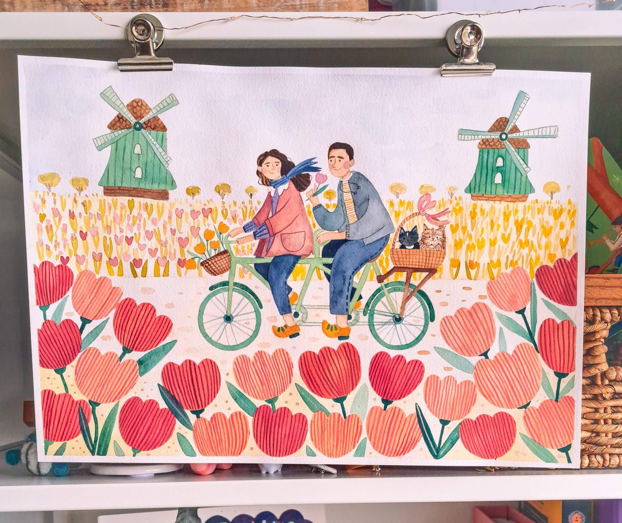 Every illustration begins with the moments you share — the memories, details, and feelings that matter most. I transform them into a custom artwork full of playful touches.
