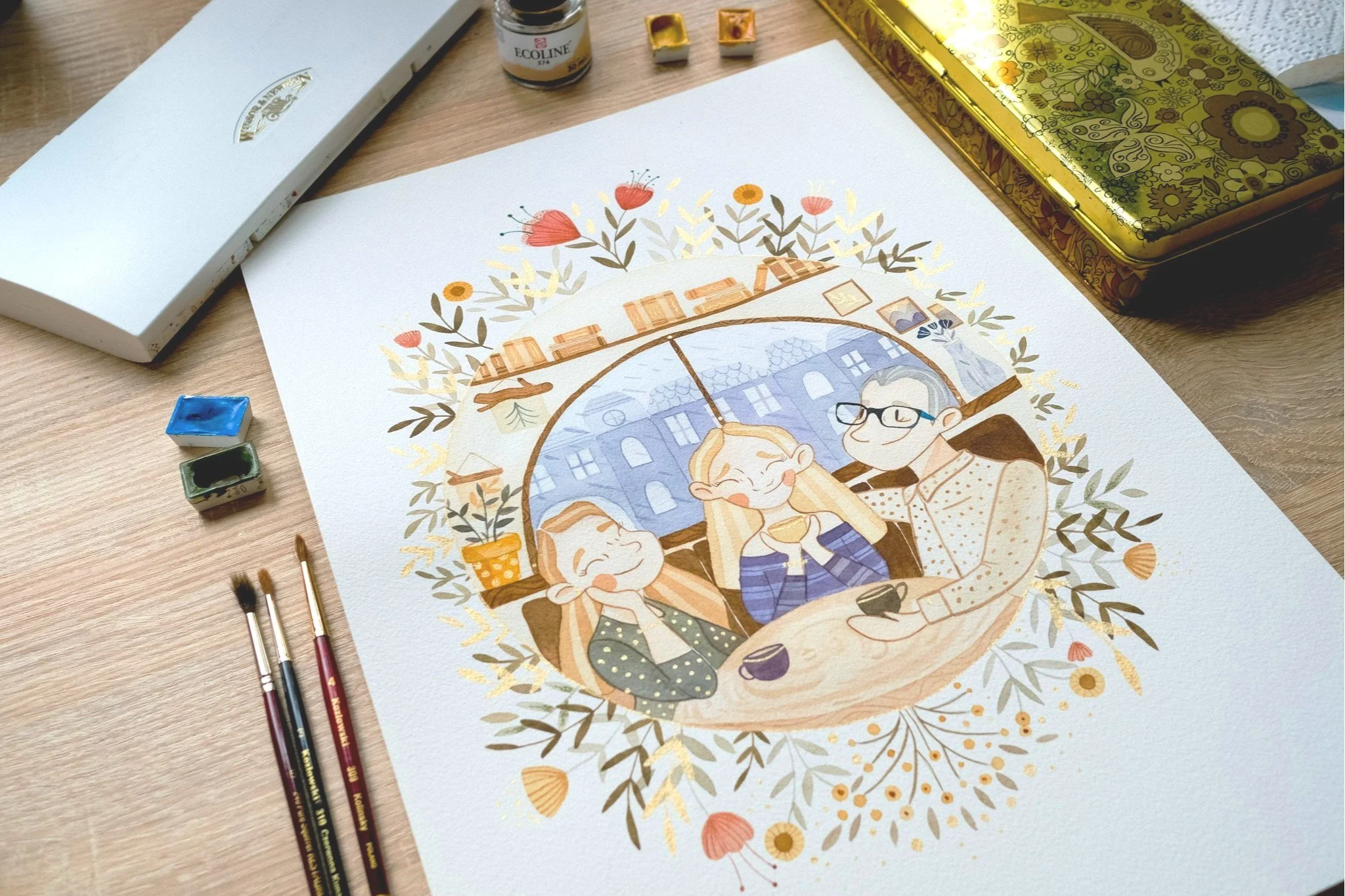 Two rounds of changes are included, giving us time to fine-tune everything until it feels just right. For hand-painted watercolor illustrations, adjustments are easiest during the sketch stage — once painting begins, changes can be very difficult. This part is all about collaboration, making sure the final piece truly reflects your story.